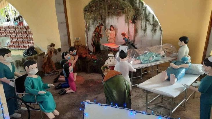 Así como muchas cosas han sido adaptadas a la emergencia sanitaria por el coronavirus, en la parroquia de Cristo Rey en el municipio de Tenosique, armaron un nacimiento COVID.
