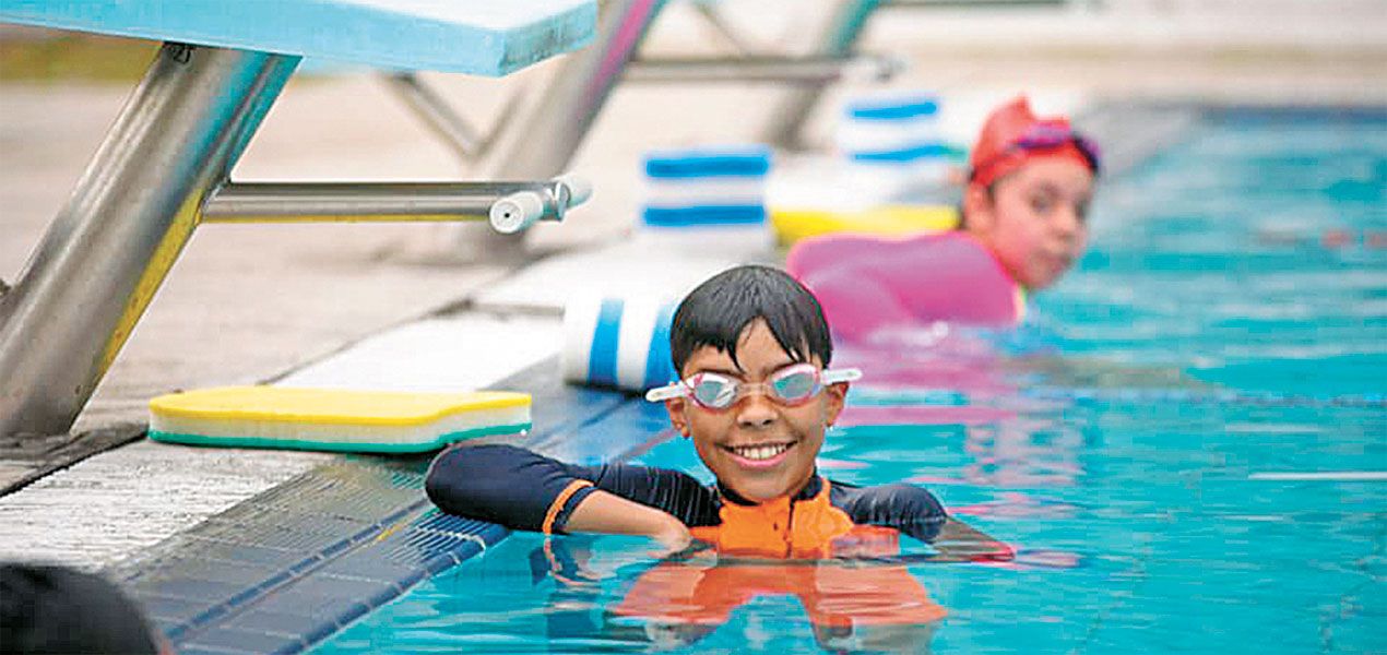 El menor Bruno Cruz practica sus clases de natación en la Unidad Margarita Maza de Juárez; sueña con ser olímpico