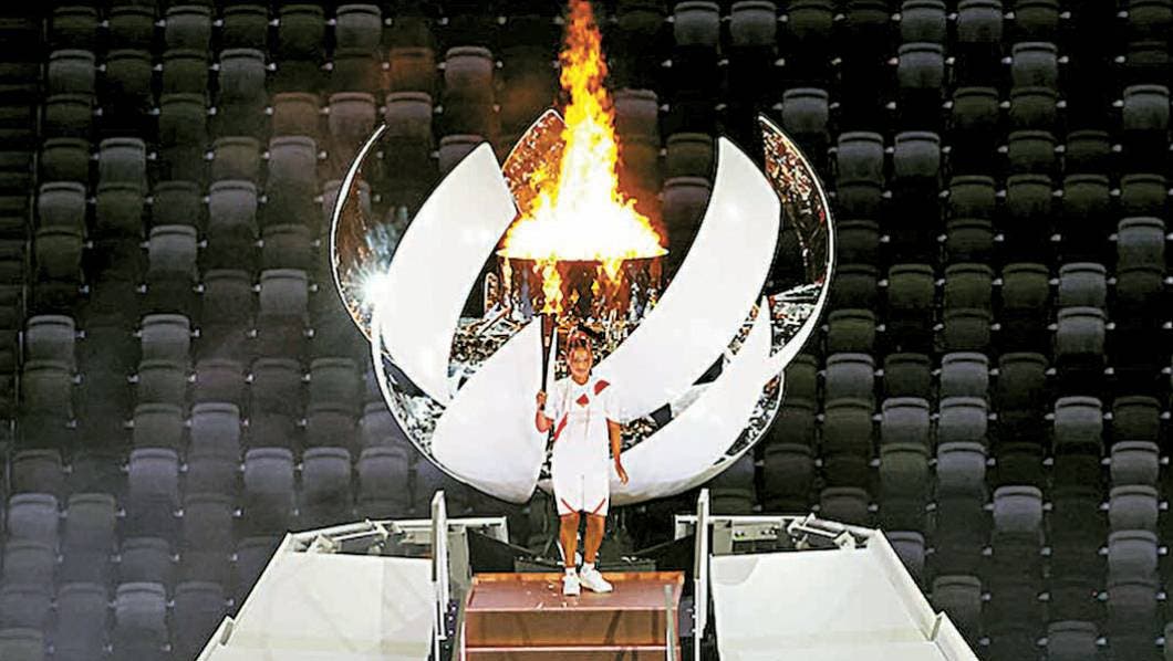 Siempre se mantiene en secreto quién es el ex atleta o deportista actual que encenderá el pebetero, y siempre es originario del país, en esta ocasión le tocó a la mejor tenista nipona. Naomi apareció sorpresivamente para recibir el último relevo rumbo a los escalones que la llevaría al fuego.