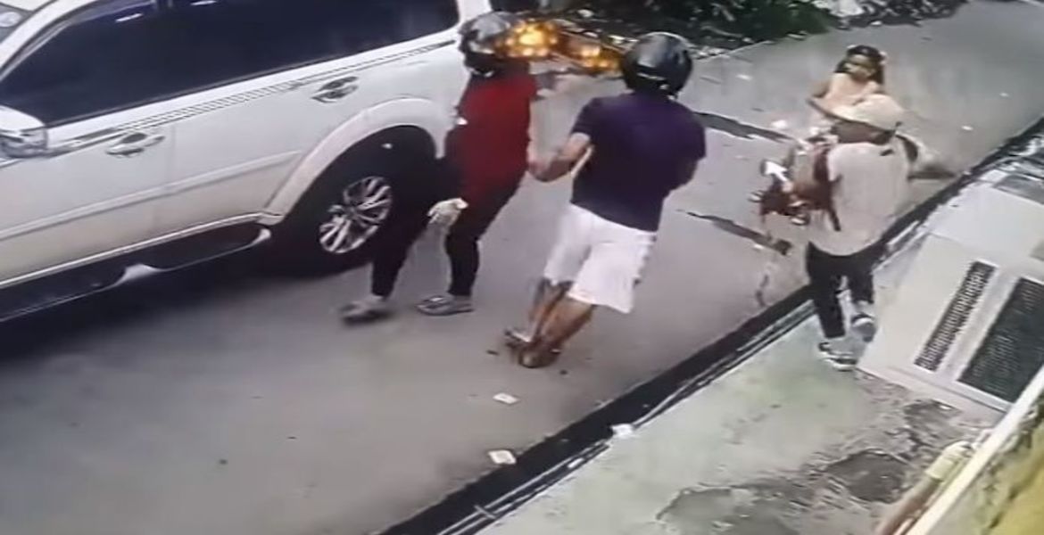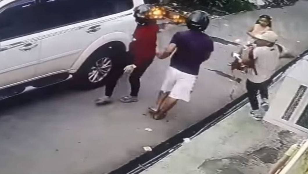 La valiente pequeña tras el jaloneo de la bolsa terminó en el suelo, pero rápidamente se puso de pie y corrió hacia los sujetos que la golpearon para evitar que retrasara su escapatoria.