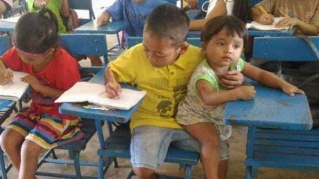 "No quiero ausentarme, señorita. Traeré a mi hermano de un año porque mi abuela tiene que trabajar en la granja y nadie se puede quedar a cuidarlo", le dijo el niño a la profesora.