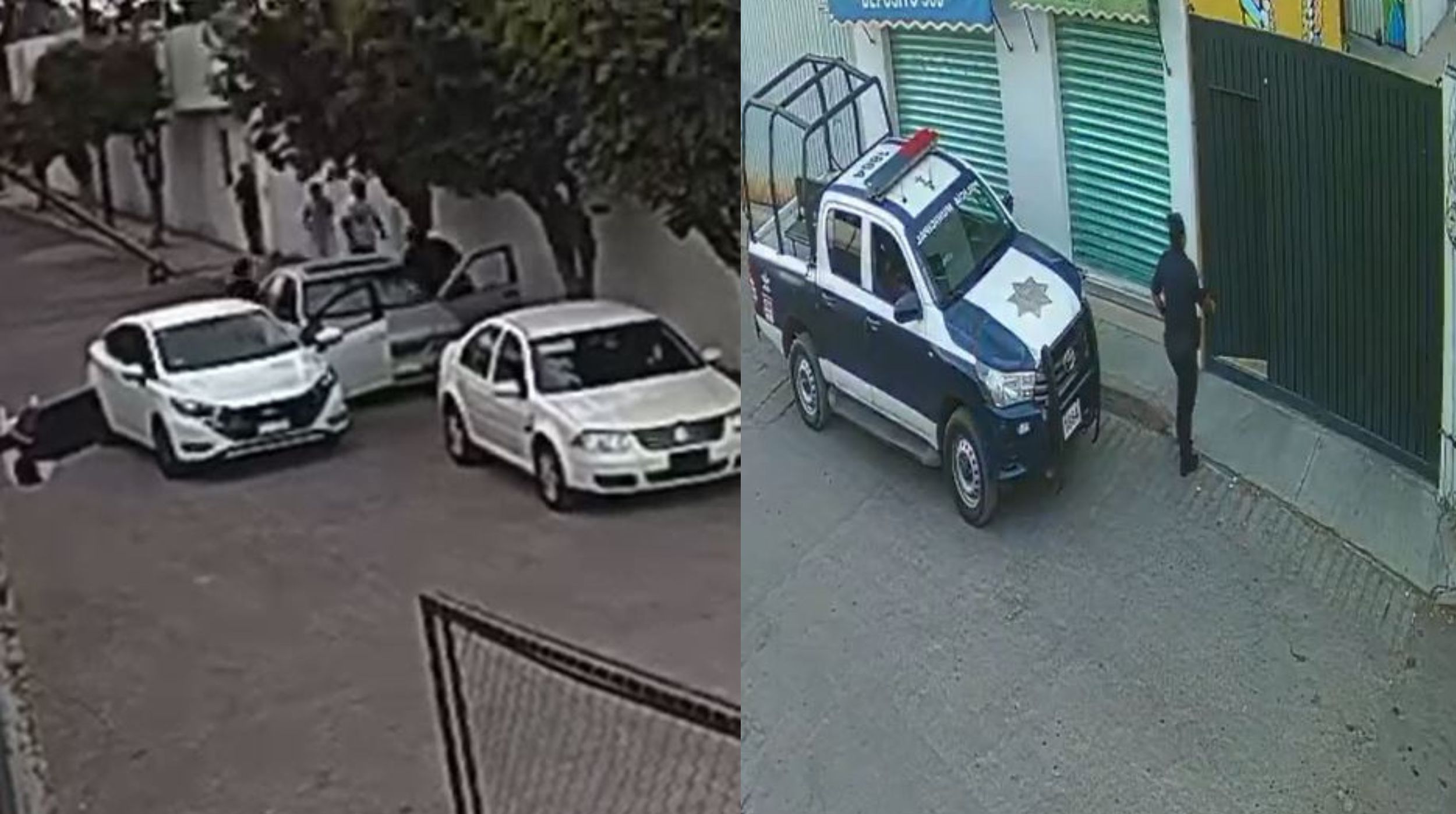 Las imágenes captadas por cámaras de seguridad muestran cómo los ocupantes del Versa descendieron del vehículo y golpearon al conductor de un automóvil gris en la vía pública, mientras la patrulla 1864 permanecía en el lugar sin intervenir. Ese comportamiento policial es el núcleo del interés público en este caso, independientemente de las motivaciones personales entre las partes.