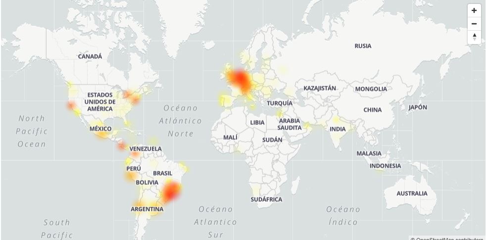 El sitio DownDetector mostró que las fallas en WhatsApp del martes 14 de julio es presentan principalmente en Europa, sur de Asia y el continente Americano, incluido México.