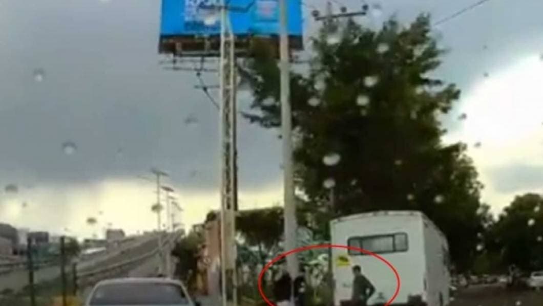 El video fue grabado desde el parabrisas de un automovilista, aunque no se precisa la hora, ni el día.