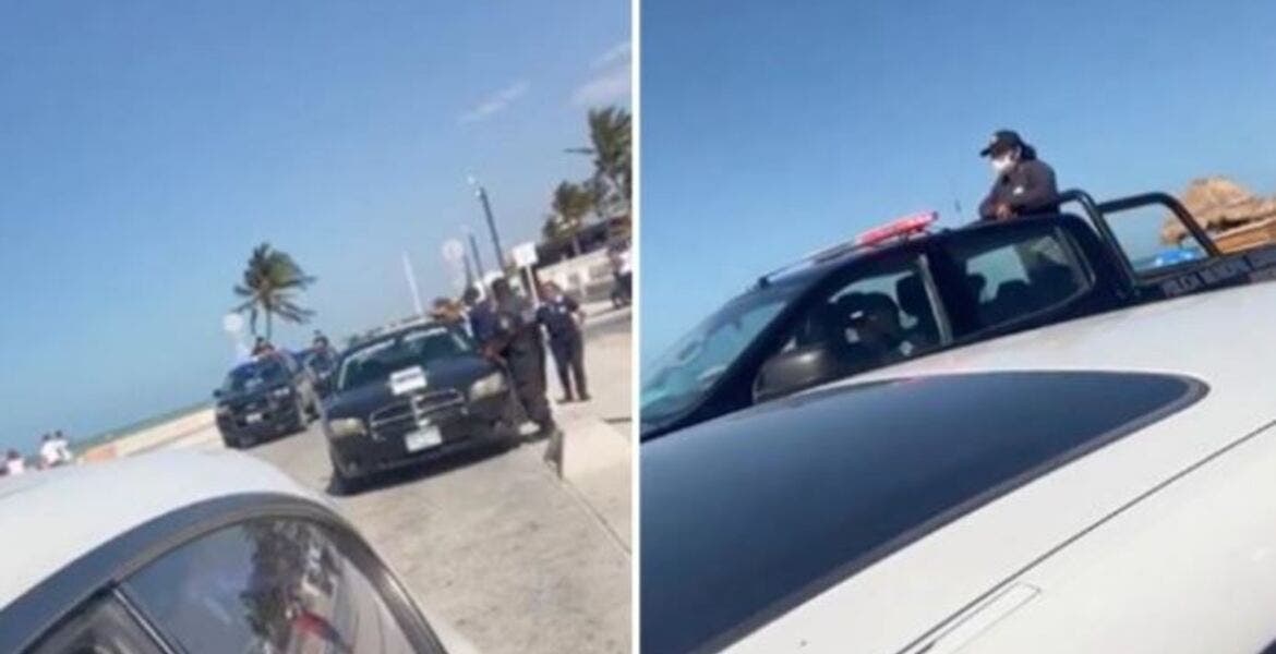 Con altavoces, los elementos policiacos recorren la zona e indican: “Molestandoles, reiterandoles que no se trata de vacaciones, sino de una medida de contingencia para favorecer el aislamiento y que las familias permanezcan en casas, así que les pedimos de la manera más atenta retirarse de la playa y de los lugares públicos por favor”.