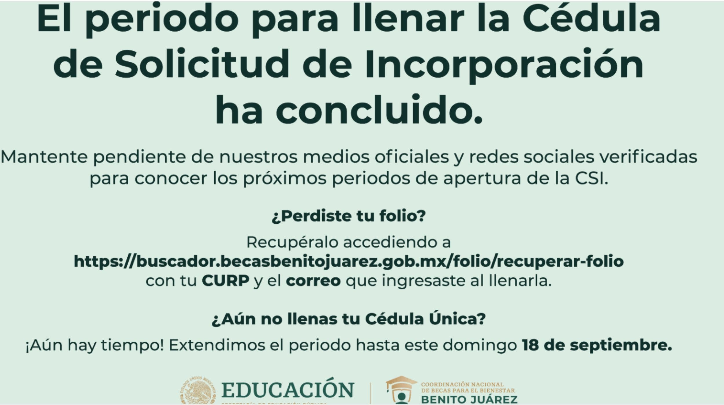 De acuerdo con lo establecido en el programa, los aspirantes de educación básica de la Beca Benito Juárez tenían hasta el pasado jueves 15 de septiembre para hacer el registro y si no lo completaron, entonces deberán esperar hasta la siguiente convocatoria.