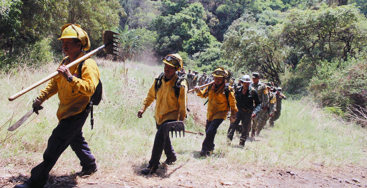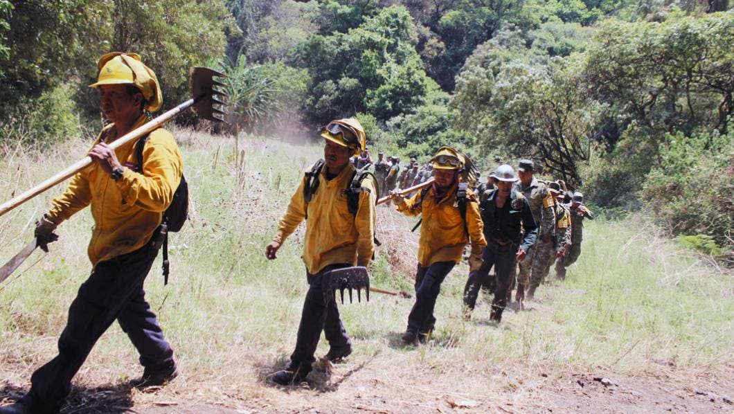 Explicó que llegó un helicóptero de la Marina Armada que tiene tres mil 500 litros, muy grande, hoy viene uno igual de la Policía Federal; vamos a mojar, a sellar las barrancas y peñascos, que son la parte compleja y difícil."