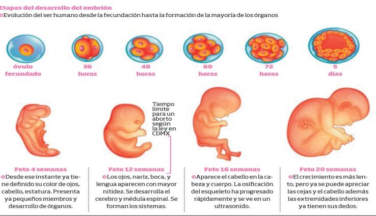 Evolución del ser humano desde la fecundación hasta la formación de la mayoría de los órganos