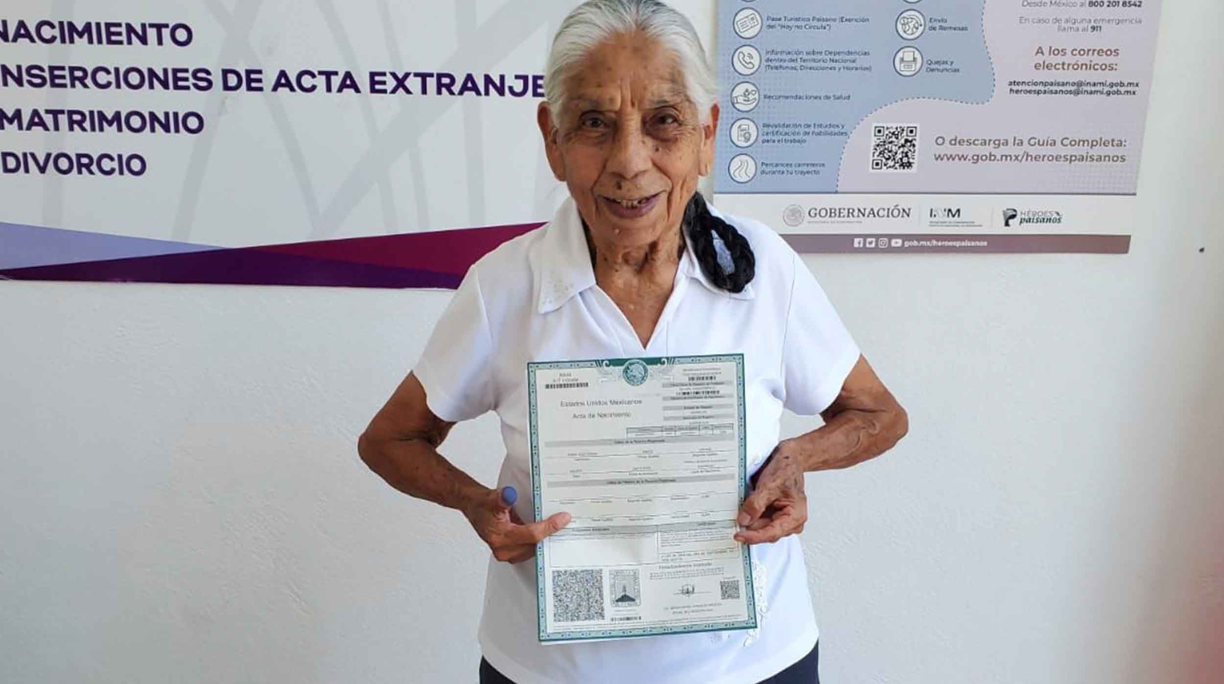 En esta ocasión, la señora Juana Eustorgia Brito Urciño, de 87 años de edad, originaria de Guerrero, quien no contaba con identidad jurídica, así como Roberto Chávez Bautista, de 88 años de edad, recibió su registro extemporáneo en el municipio de Amacuzac.
