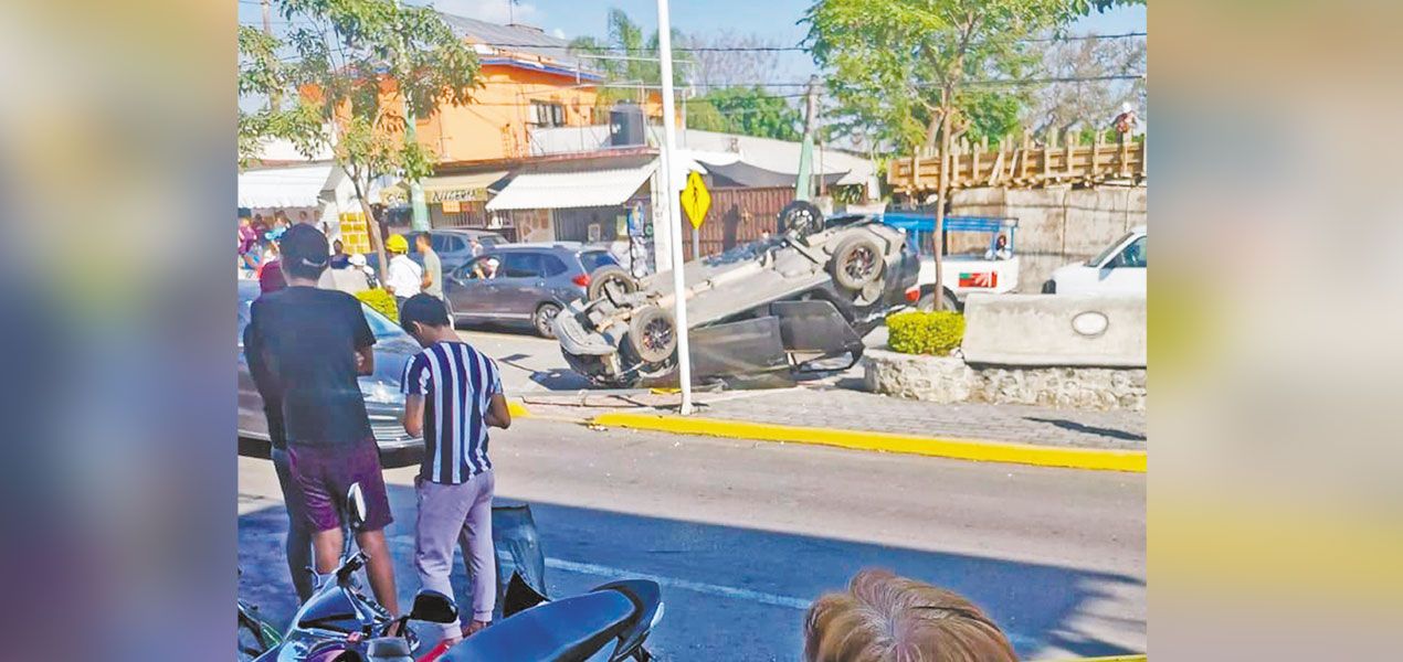 CUERNAVACA, MORELOS.- Al ser impactado por una camioneta, un auto compacto volcó sobre una jardinera de la colonia Acapantzingo, además de que otra unidad que estaba estacionada resultó afectada. El accidente ocurrió ayer a las 14:40 horas sobre la Avenida Ruiz Cortines, de la citada colonia, entre un automóvil Vento negro, una Jeep gris y una camioneta Volvo, color vino. Testigos del accidente comentaron que el auto negro circulaba por la avenida rumbo a la autopista y la Jeep salía de la calle Narciso Mendoza. Fue al tratar de incorporarse a la avenida cuando el conductor de la camioneta gris impactó el costado derecho del Vento, ocasionando que se saliera de control y volcara. La Jeep también chocó contra una camioneta Volvo que estaba estacionada, mientras que vecinos del lugar auxiliaron al hombre que iba en el Vento.