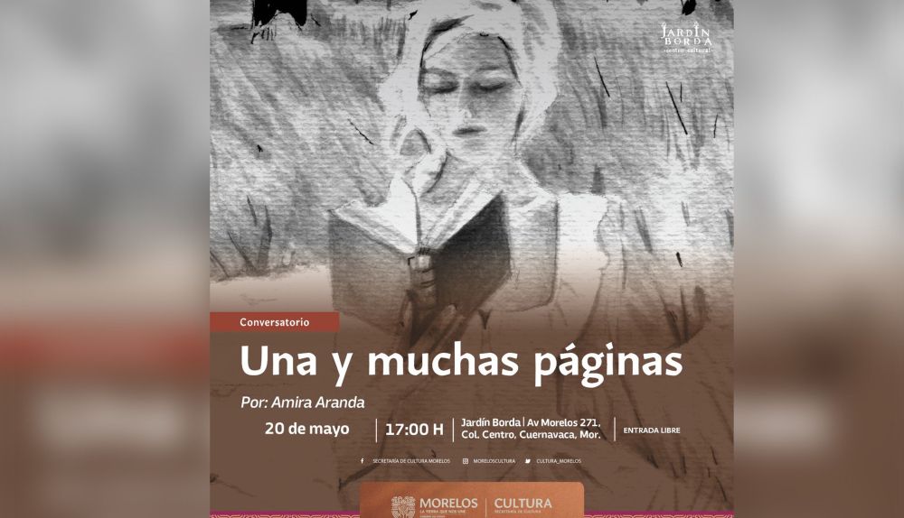 La Secretaría de Cultura del Estado de Morelos, a través de la Dirección General de Museos y Exposiciones (DGME), invita a la ciudadanía a participar en el conversatorio ‘Una y muchas páginas’ con la artista Amira Aranda, este 20 de mayo, a las 17:00 horas, en la sala Manuel M. Ponce del Centro Cultural Jardín Borda.