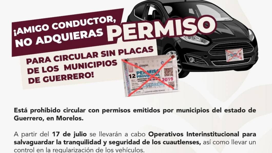 Lo anterior, debido a que está prohibido circular en Morelos con permisos emitidos por municipios del estado de Guerrero.