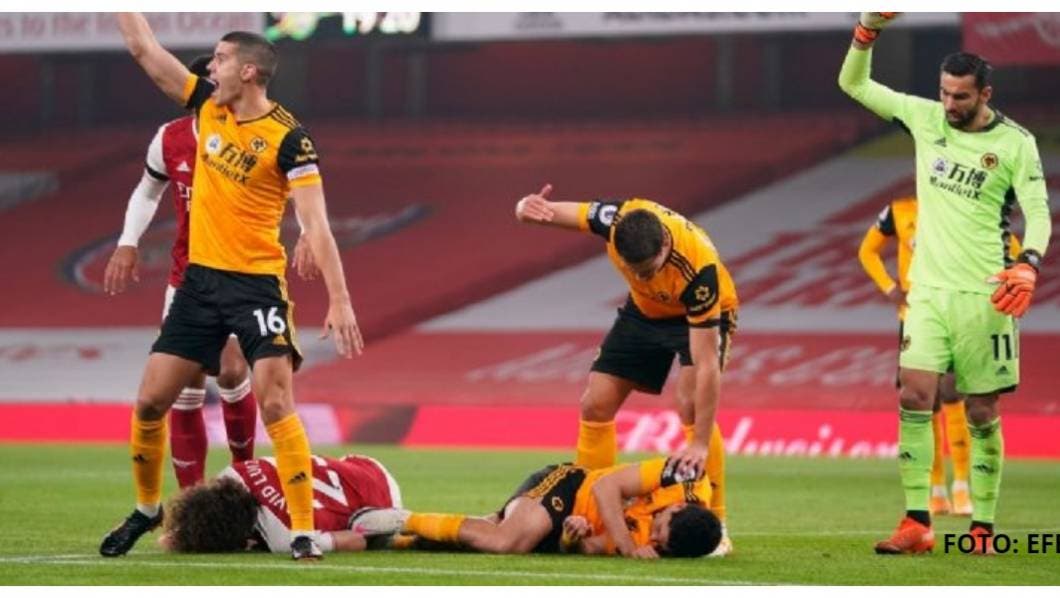 El delantero mexicano de los Wolves de Inglaterra, Raúl Jiménez, salió inconsciente y en camilla, después de sufrir un choque de cabeza con David Luiz del Arsenal pic.twitter.com/QjqhZOmNa3
