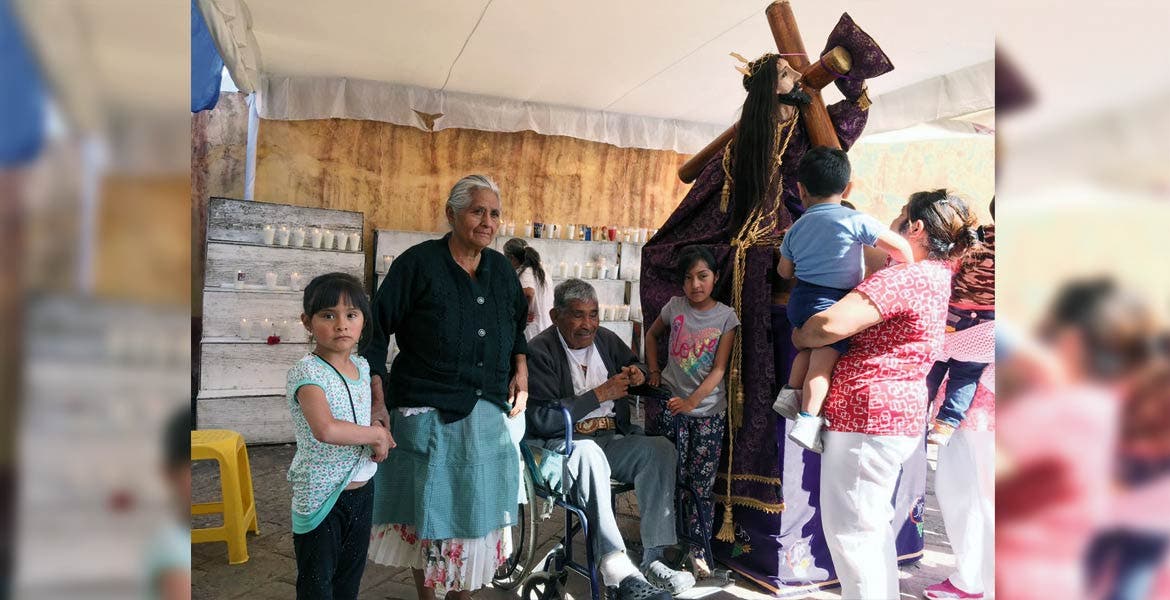 TEPALCINGO, MORELOS.- Acompañado por su esposa y nietos, don Emilio Torres, vecino de Tochimilco, Atlixco, Puebla, llegó ayer al Santuario del Señor de Tepalcingo, a pedirle que lo ayude a recuperar la salud que perdió cuando un caballo le cayó encima.