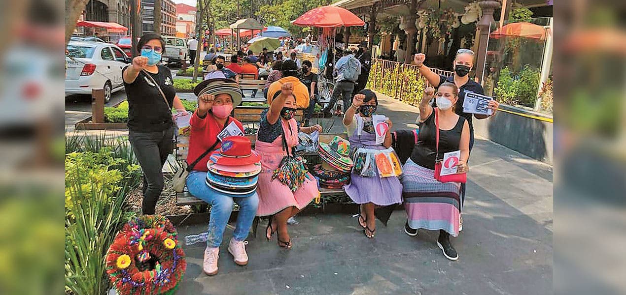 En Cuernavaca. Con volantes el Ayuntamiento da información relevante a los grupos de mujeres que venden en el centro.