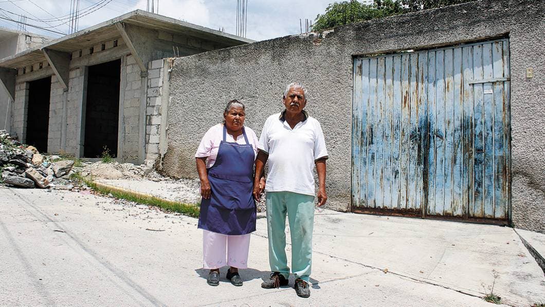 Cuernavaca, Morelos.- La familia Reyes-Aragón, perdió su casa de dos pisos y tuvieron que volver a levantarse, han construido nuevamente dos cuartos en ese mismo espacio. Esto les ha dejado una enorme deuda monetaria, pero entre ellos y sus seis hijos se dan ánimos y día a día y trabajan sin descansar a pesar de la edad y las adversidades, afirma María Magdalena, jefa de la familia.