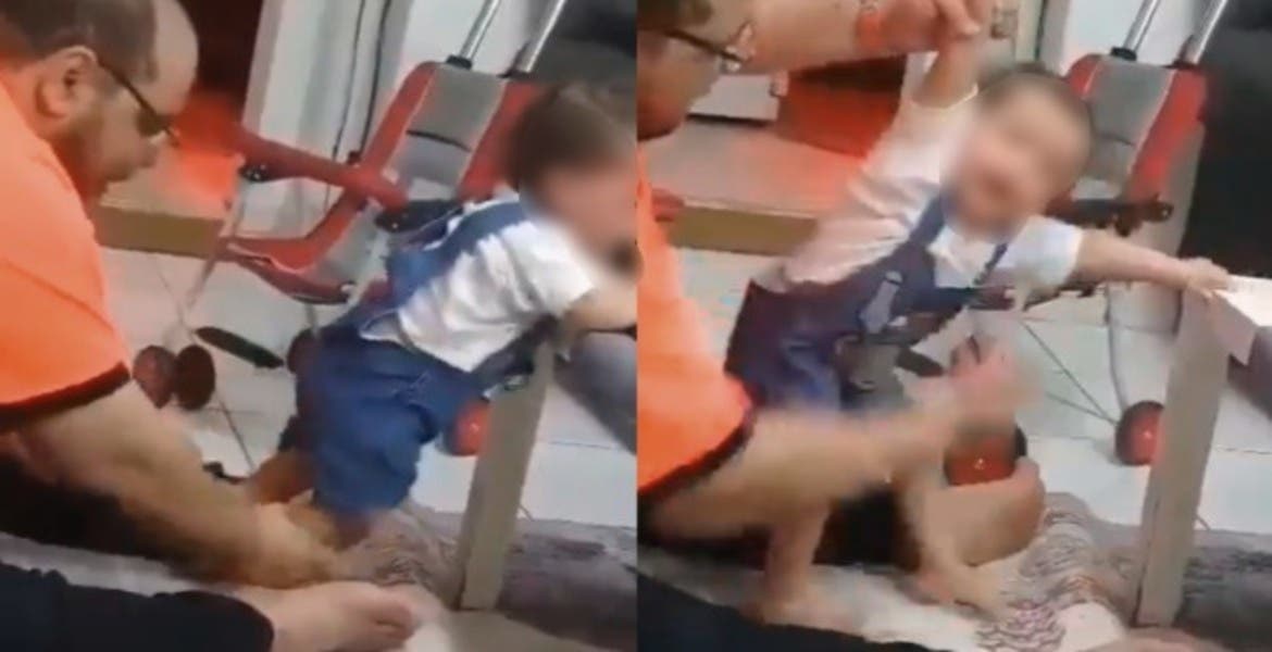 En redes sociales se ha viralizado un video donde un hombre golpea fuertemente a una bebé supuestamente para que se prepare para caminar.