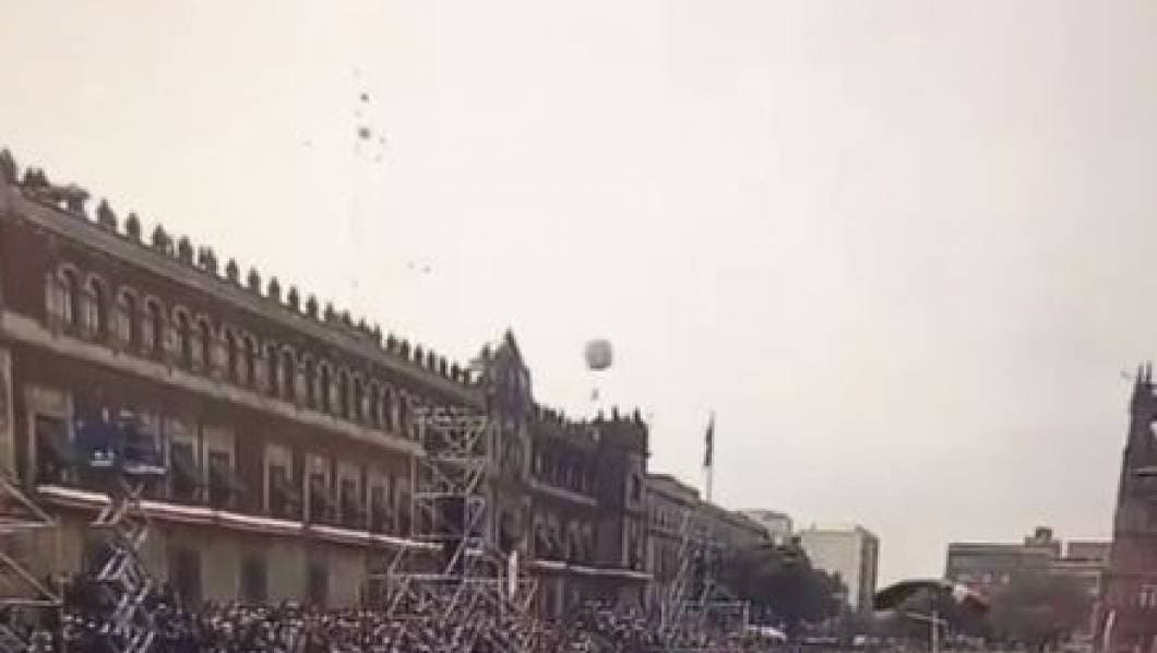 Usuarios de redes sociales reportaron que el paracaidista presuntamente cayó en la parte trasera de Palacio Nacional sobre la calle Corregidora; reportan que el militar presentó lesiones.
