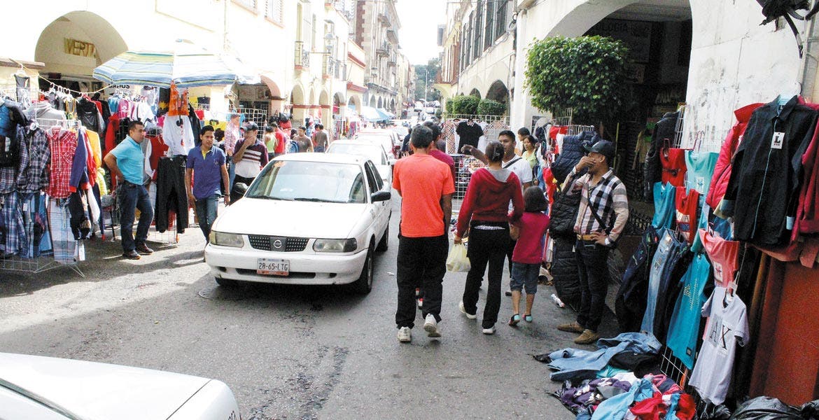 Esta foto, no tan antigua, muestra el drástico cambio que tuvo la calle de Guerrero del centro de Cuernavaca; es diciembre de 2014 y se aprecia la gente comprando en medio del arroyo vehicular.