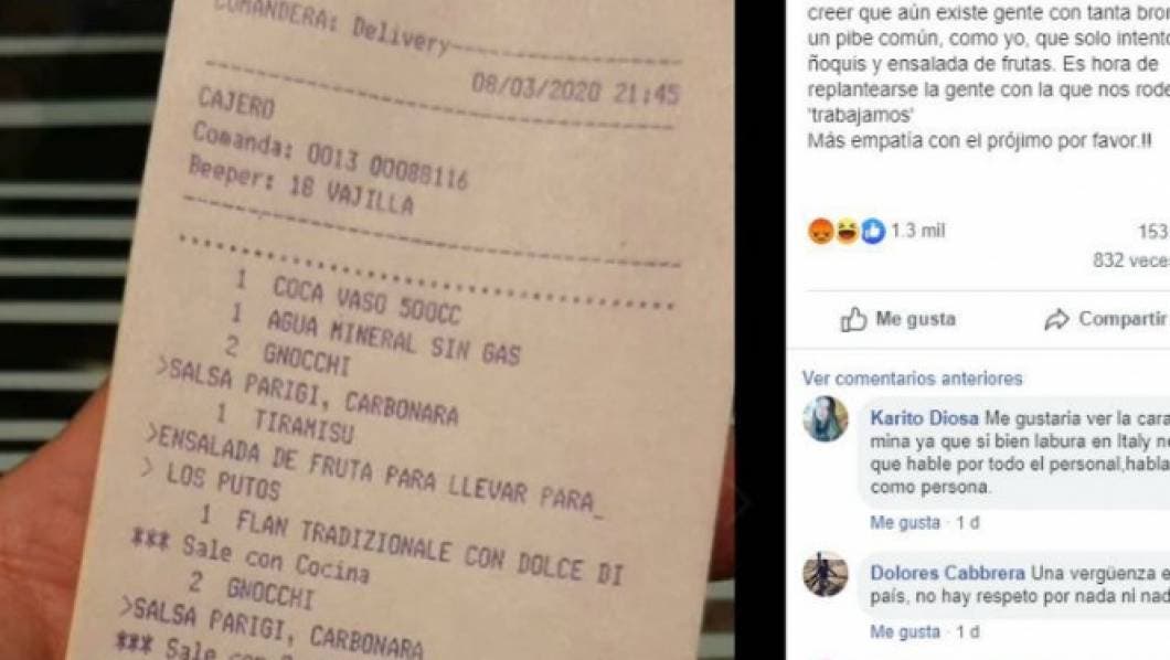 Todo iba bien hasta ese momento. Sin embargo, cuando se les entregó el ticket de pago encontraron una frase ofensiva y homofóbica.
