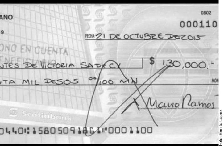 Uno de los cheques firmado por el diputado federal de MC, Mario Ramos, asciende a un monto de 130 mil pesos, que se pagó el 21 de octubre de 2015 al hotel Las Fuentes, propiedad de Cárdenas, en la ciudad.