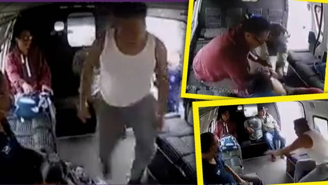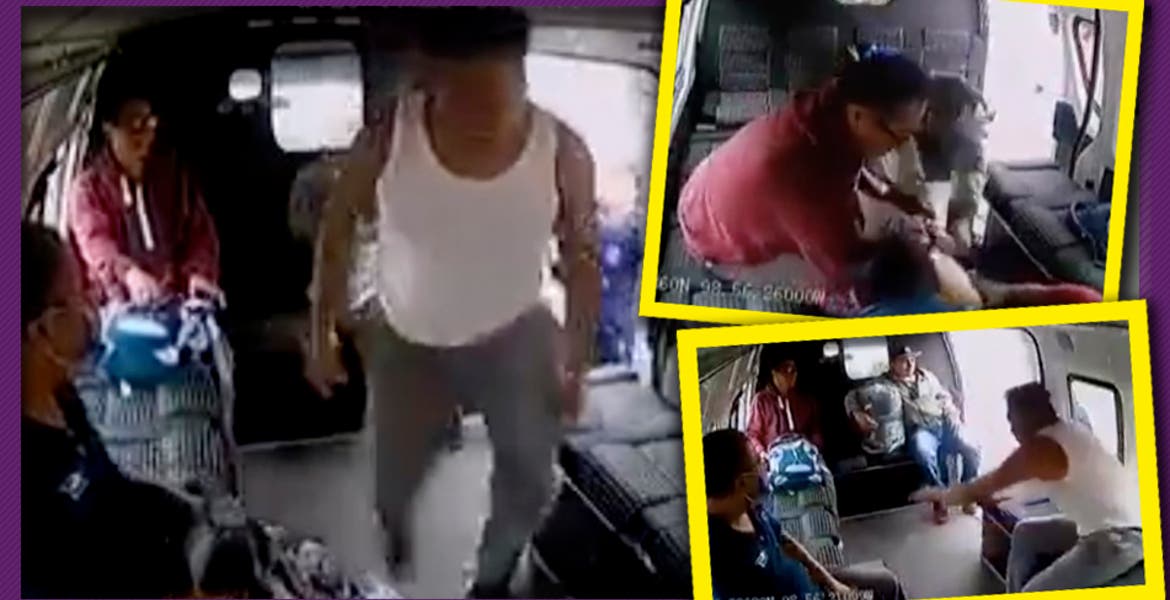 El sujeto que ya estaba arriba, al percatarse de eso, intenta bajarse de la combi pero uno de los pasajeros, el que estaba cerca de la puerta, logra agarrarlo y lo regresa al interior de la unidad.