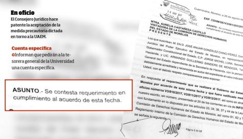 Agrega, a través de un comunicado, que es indiscutible que la posición extraoficial de la UAEM refleja notoria incongruencia, y hasta el momento se erige como un obstáculo al cumplimiento de las medidas precautorias solicitadas ante la CDHM en su carácter de promovente.