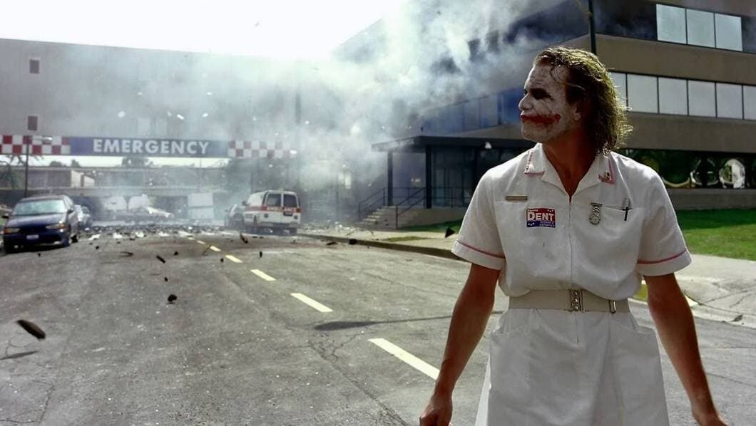 La escena que la pequeña recreó se trata cuando el Joker se viste de enfermera y le realiza una visita al fiscal Harvey Dent en el nosocomio, para posteriormente hacer explotar el hospital.