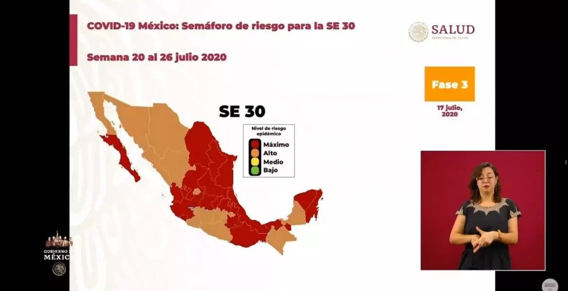 Morelos, por su parte, permanecerá otra semana más en naranja, del 20 al 26 de julio.