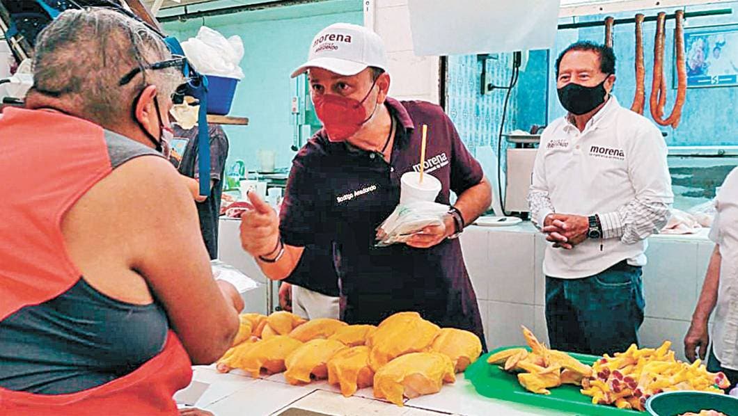 Campaña. Rodigo Arrendondo, candidato a alcalde por Morena, recorrió el mercado viejo en Cuautla.