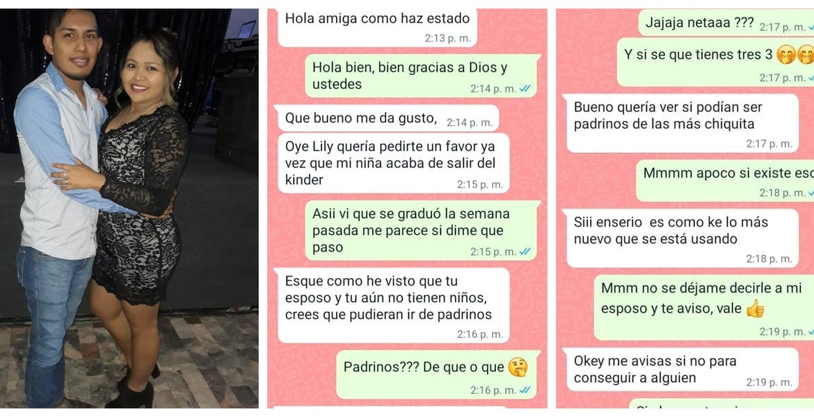 En las imágenes se puede leer que la mujer señala que su hija acaba de salir del kínder y aprovechando que su amiga y su esposo aún no tienen hijos, por eso les solicita que sean padrinos.