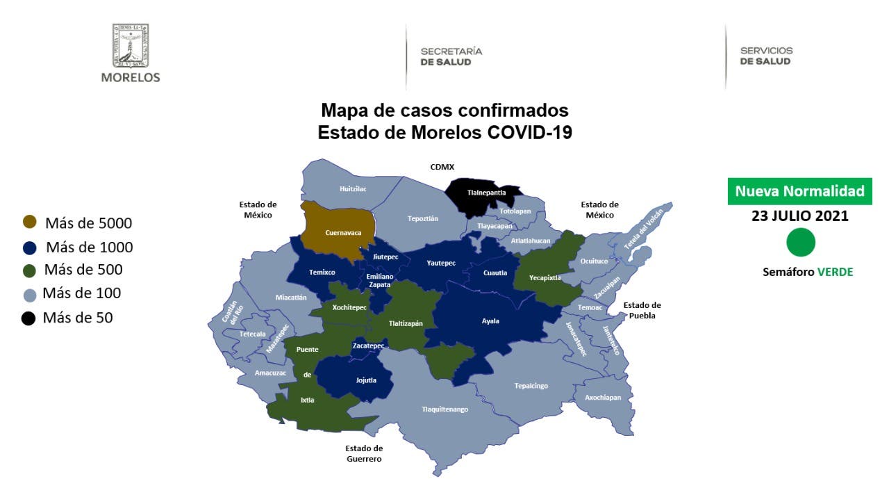 Los nuevos pacientes son 53 mujeres de Amacuzac, Cuautla, Cuernavaca, Emiliano Zapata, Huitzilac, Jiutepec, Jojutla, Temixco, Temoac, Tepoztlán y Zacatepec; de las cuales, 50 se encuentran aisladas en sus hogares, 2 hospitalizadas como graves y 1 como no grave.