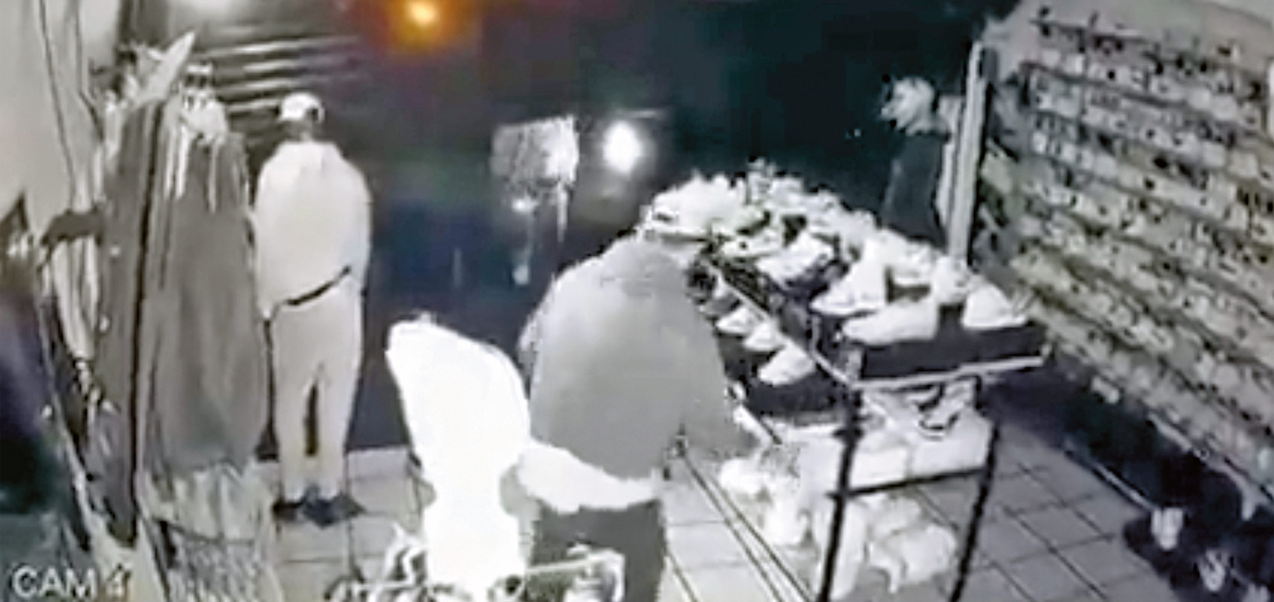 Los delincuentes fueron captados por las cámaras de vigilancia del negocio de ropa y tenis, poco a poco, fueron subiendo la mercancía a un vehículo que estaba estacionado afuera del establecimiento.
