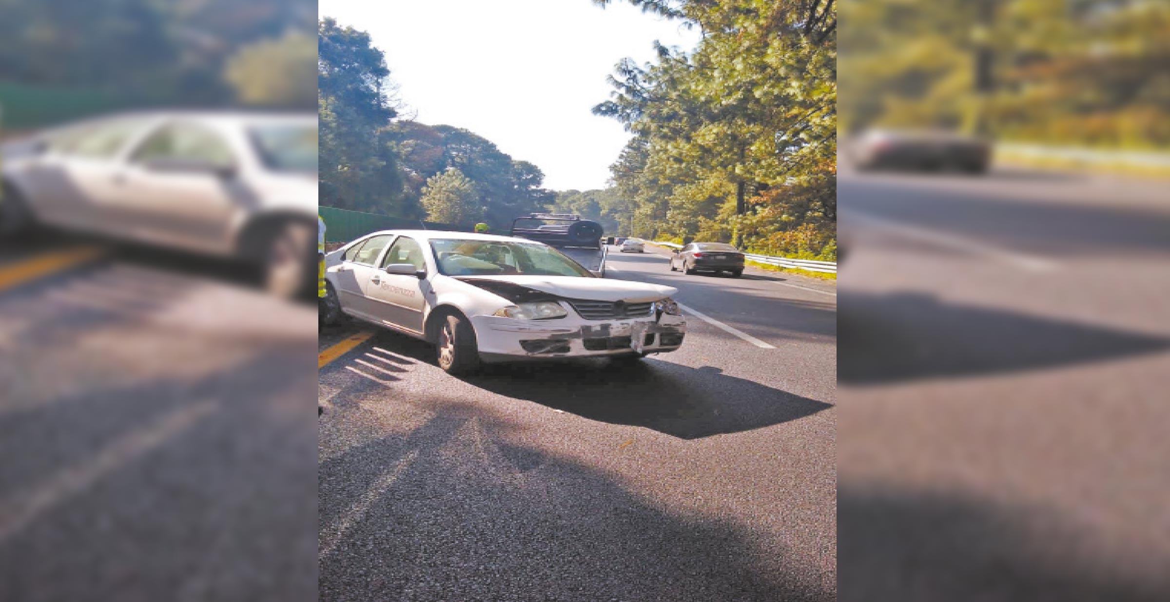 Con severos daños en la carrocería terminó un vehículo Volkswagen Bora ya que el conductor perdió el control y se impactó contra el muro de contención cuando circulaba por la Autopista México-Cuernavaca, a la altura del poblado de Coajomulco, en el municipio de Huitzilac. Por