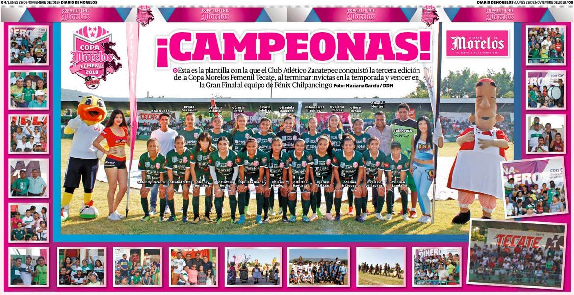 dEsta es la plantilla con la que el Club Atlético Zacatepec conquistó la tercera edición de la Copa Morelos Femenil Tecate, al terminar invictas en la temporada y vencer en la Gran Final al equipo de Fénix Chilpancingo.