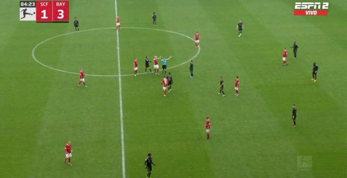El árbitro Christian Dingert, a instancias del VAR, detuvo el encuentro, que estuvo interrumpido durante varios minutos. La situación se solventó, pero el error ya se había cometido. Durante unos segundos el Bayern había jugado con un hombre más.