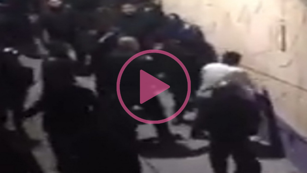 Un video muestra el momento en el cual varios policías rodean y agreden a un hombre que viste playera blanca. Después de unos segundos, el hombre cae y los uniformados continúan insultándolo y dándole golpes a pesar de que grita y llora. Se escucha como uno de ellos le dice: “a la policía se le respeta”.