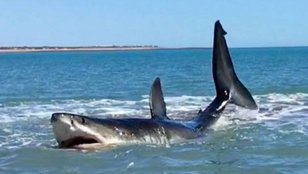 En el video se muestra el momento en que el escualo acechaba a escasos metros del infante antes de que este fuera sacado del agua por el oficial para ponerlo a salvo. De momento no se ha identificado la especie de tiburón de la que se trataba.