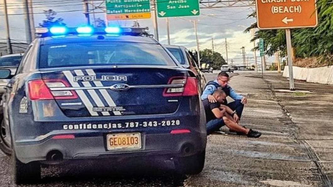 PUERTO RICO.- Un policía consoló a un hombre en la vía publica en vez de multarlo cuando el ciudadano hablaba por teléfono celular mientras conducía su vehículo
