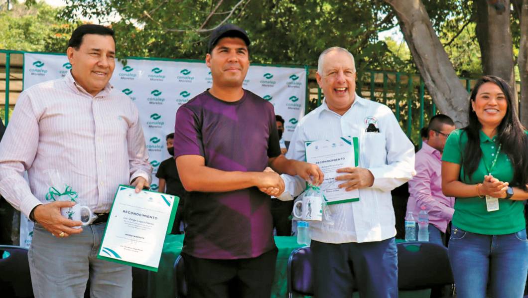 Acompañaron delegados estatales de sindicatos de docentes, así como profesores y alumnos del Conalep Cuernavaca, quienes reconocieron el apoyo y compañía del vicepresidente Jorge López Flores y del ex árbitro Arturo Brizio Carter; y ambos brindaron palabras de superación y motivación a los jóvenes.