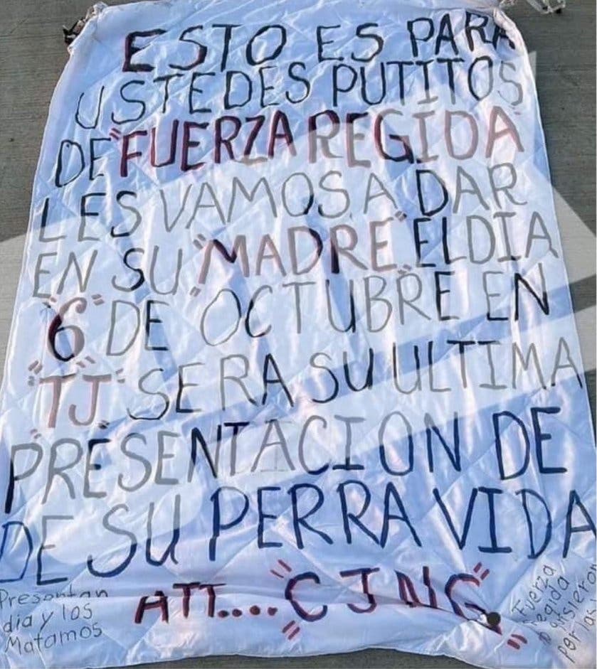 En estas inquietantes advertencias, difundidas en redes sociales, el CJNG proclama: "Esto es para ustedes putitos de Fuerza Regida. Les vamos a dar en su madre el día 6 de octubre en TJ. Será su última presentación de su perra vida. Atte: CJNG". La amenaza pone en alerta a la comunidad y a los seguidores de la agrupación.