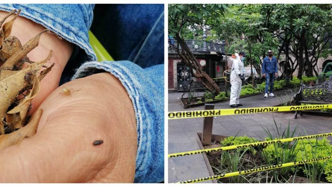 Una Araña denominada "Theridiidae" es la que afecta a los árboles "Ficus de la India" del Jardín Juárez, por lo que autoridades se encuentran fumigando el lugar, por lo que estará cerrado al público dos días. pic.twitter.com/sdXn9FHtNP