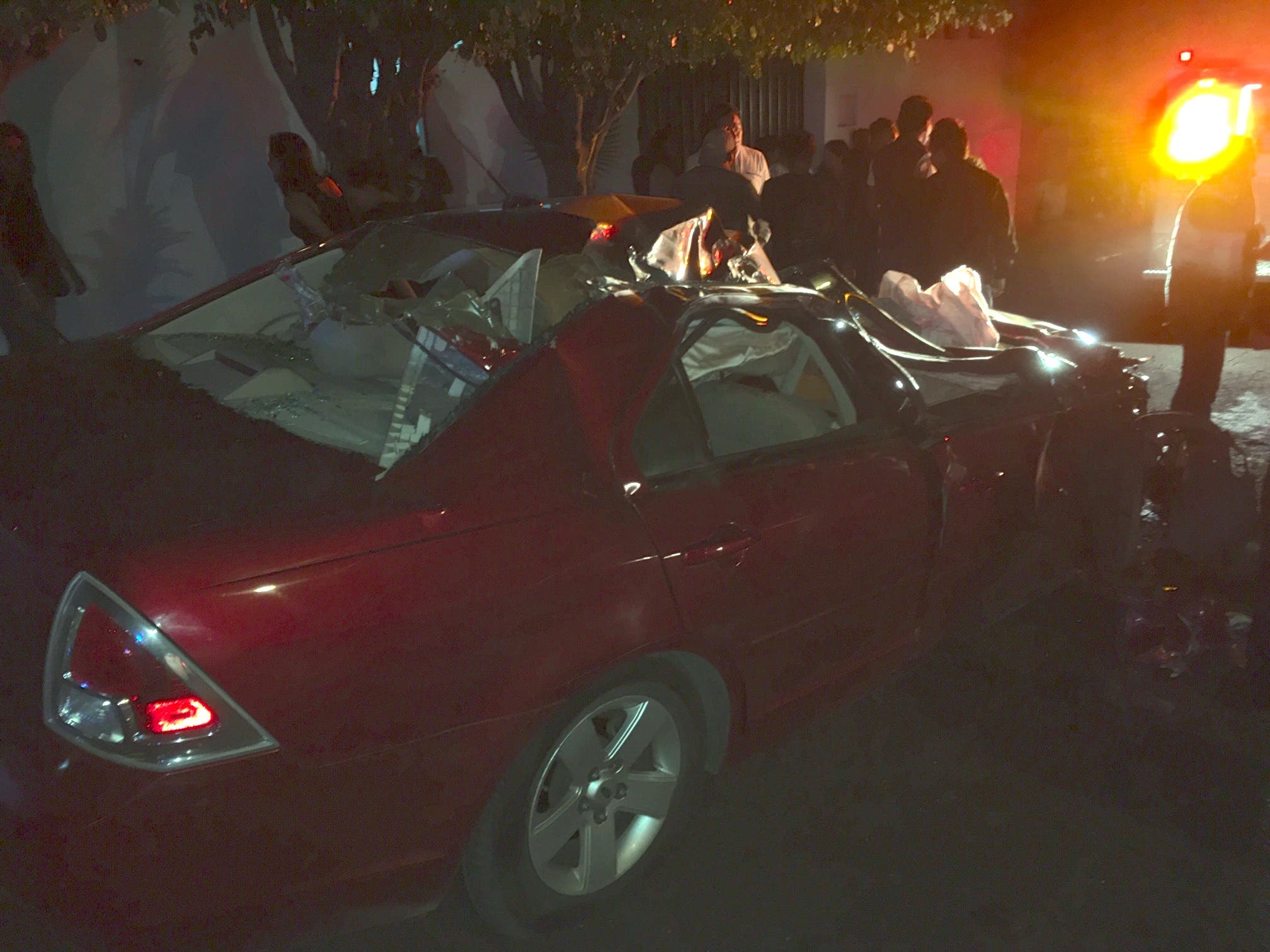 Tras la colisión, Javier y Mario quedaron atrapados entre los fierros retorcidos del coche que terminó destrozado del frente, por lo que testigos dieron parte a las corporaciones de auxilio.
