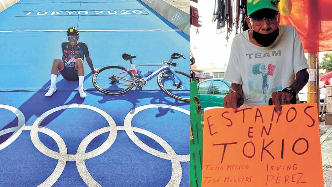 “Estamos en Tokio. Todo México, todo Morelos: Irving Pérez”, se lee en una cartulina colocada en su puesto.