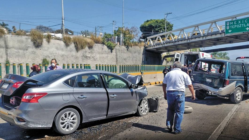 El accidente ocurrió a las 11:00 horas de ayer cuando una camioneta Caravan, color verde, con placas del Estado de México, y un Sentra gris, con matrícula de Morelos, transitaban hacia el norte por el Paso Express.