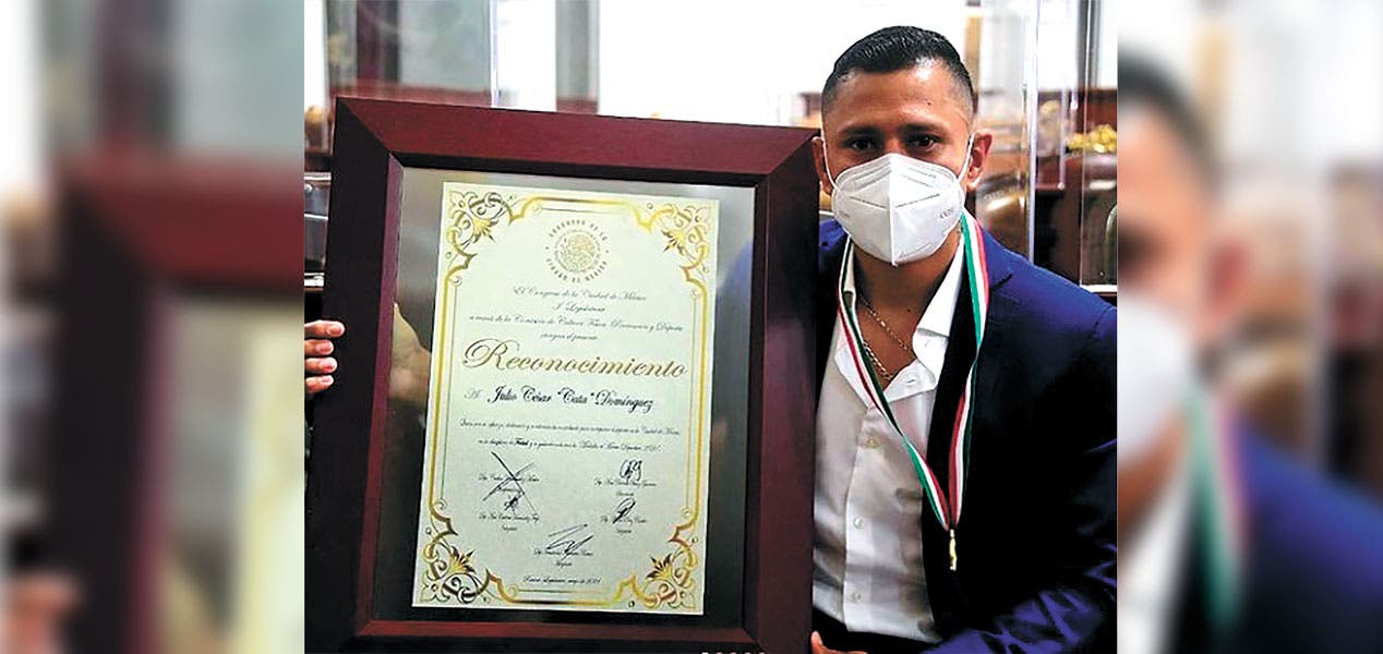 México.- El Congreso de la Ciudad de México entregó la medalla al Mérito Deportivo 2019 y 2020 al jugador del Cruz Azul, Julio César El Cata Domínguez, y a otros 17 atletas, a quienes se les reconoció su esfuerzo, su pasión, y logros deportivos para impulsar esa actividad en la Ciudad de México.