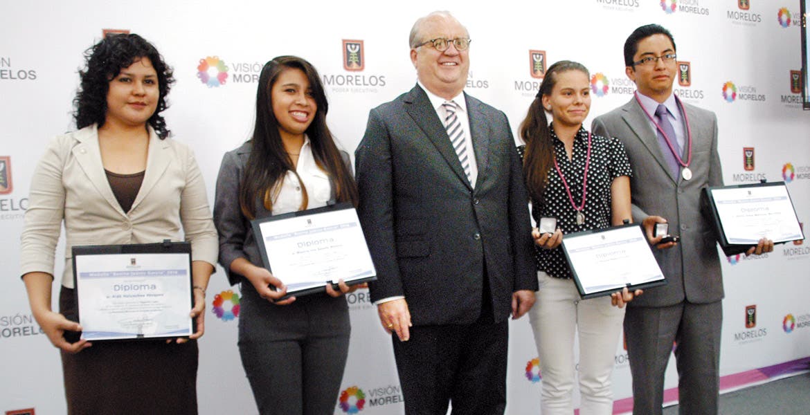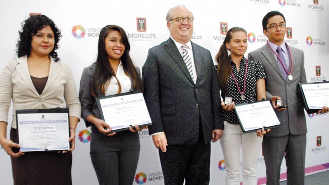 CUERNAVACA, MORELOS.- El Gobernador Graco Ramírez entregó la medalla Benito Juárez García a estudiantes de nivel medio superior que ganaron el concurso de ensayo histórico.