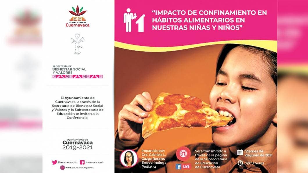 Cuernavaca, MORELOS.- Las autoridades del municipio de Cuernavaca dieron a conocer que impartirán una ponencia sobre el impacto del confinamiento en hábitos alimentarios en las niñas y niños, esto a consecuencia de la pandemia por COVID-19.