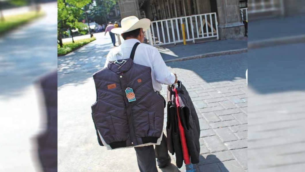 En el primer cuadro de Cuernavaca, este señor ofrece los chalecos oportunamente para el frío, el viento o la lluvia. También contribuye a evitar enfermedades respiratorias.