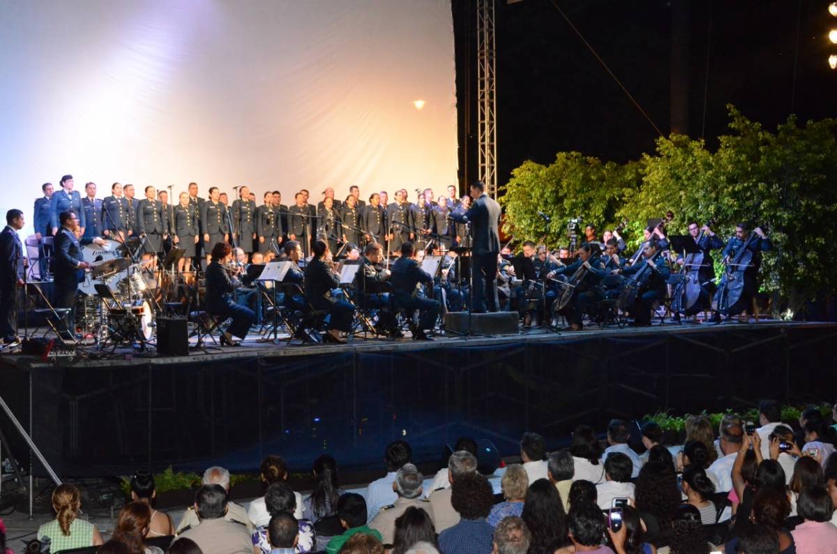 Y para finalizar con broche de oro la Orquesta Sinfónica, Coro y Mariachi de la SEDENA y la Orquesta Sinfónica de la SEMAR, ofrecerán un magno concierto abierto al público en el monumento a la Bandera, ubicado en avenida Álvaro Obregón y Sureño Carranza del Centro de la Ciudad, a las 8 de la noche.